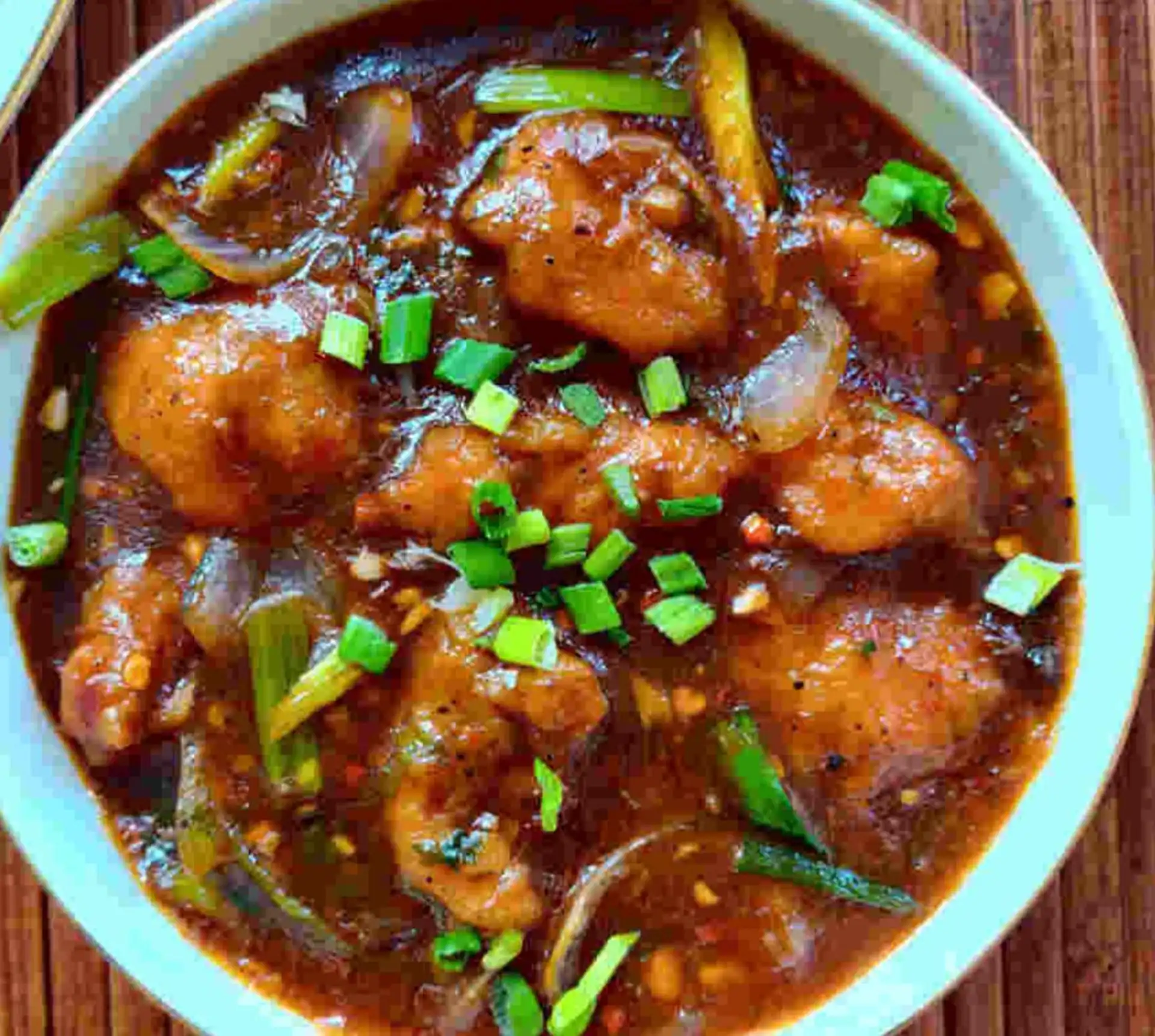 Tender chicken pieces, bell peppers, onions, and green chilies in a savory sauce