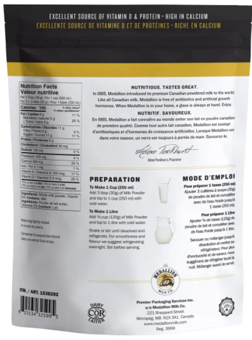 - Makes 8L of 3.25% mf milk