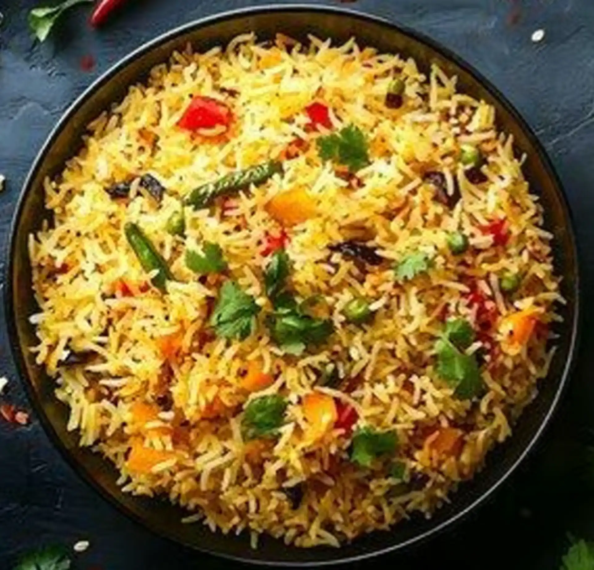 Lamb biryani with basmati rice, fragrant spices, and herbs. Options for regular or large size.