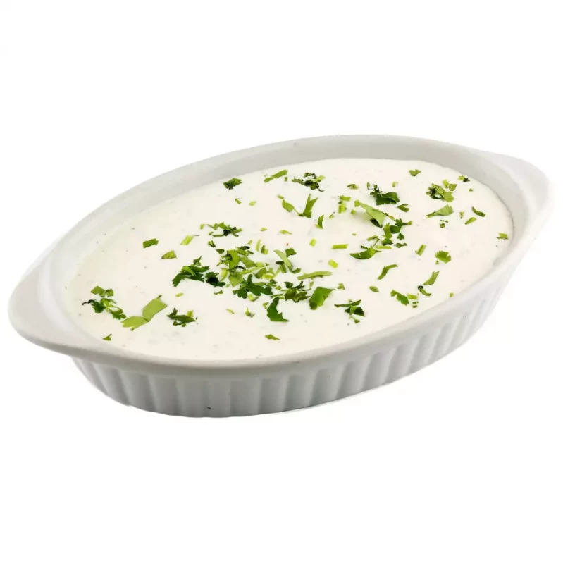 Fresh plain yogurt with diced cucumber, onions, carrots, mildly spiced.